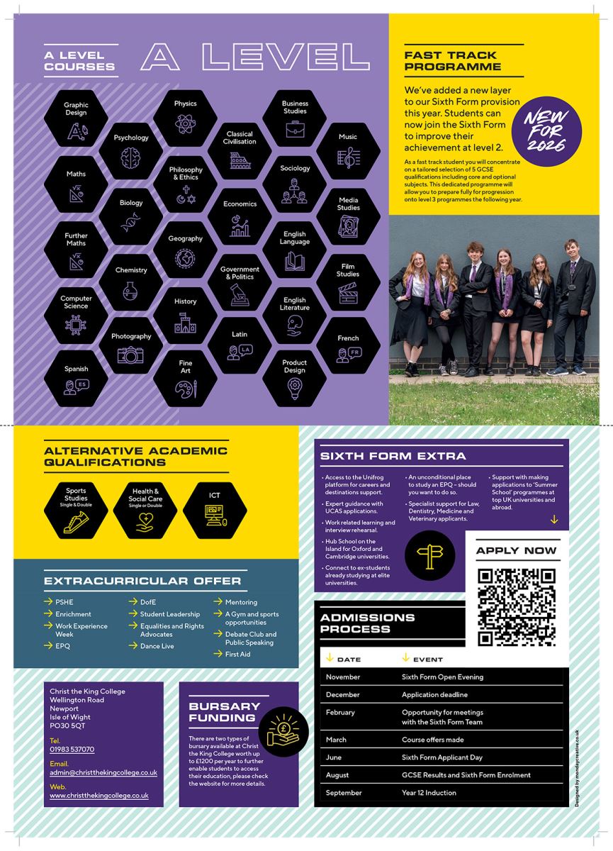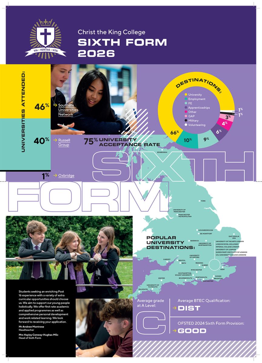 Our ambition is that Sixth Form students grow in independence and take responsibility for their own learning and success. The outstanding achievements of Christ the King College Sixth Form students, both in College and after they leave, are testament to their commitment and our education.